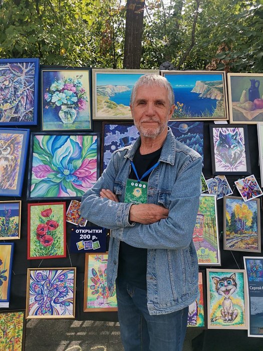 На своем стенде на улице Волжской Сергей Николаевич представил более 20 живописных работ, а также рисовал портреты и шаржи всем желающим.