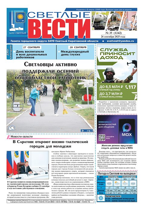 В ближайшем номере газеты «Светлые вести» вас ожидает:- Светловцы активно поддержали осенний общеобластной субботник;
