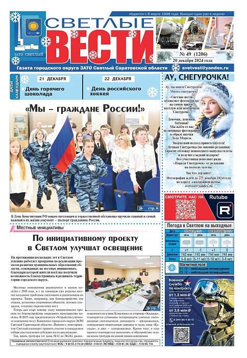 В ближайшем номере газеты «Светлые вести» вас ожидает:- «Мы – граждане России!»;