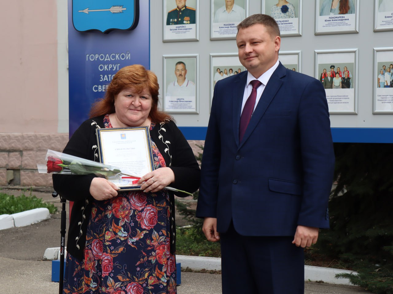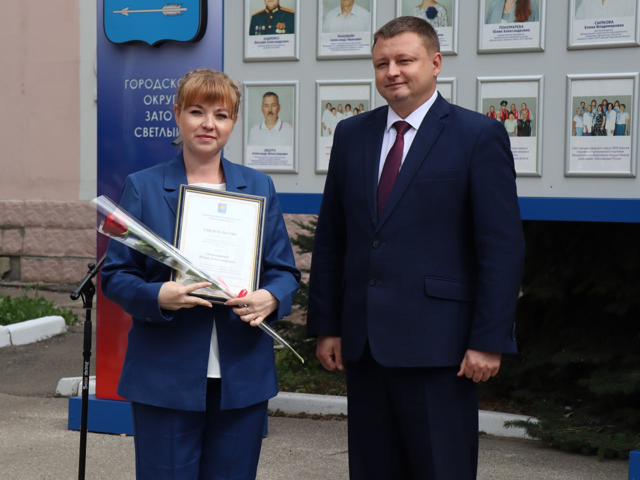 Свидетельства о занесении на Доску почёта из рук главы городского округа под бурные аплодисменты собравшихся в этом году получили: Александр Макевкин – педагог дополнительного образования Дома детского творчества; Людмила Омельченко – заместитель директора по учебной работе Детской школы искусств; Юлия Пономарева – художественный руководитель Дома культуры; Елена Сыпкова – делопроизводитель детского сада «Светлячок»; Александр Цицура – начальник отделения государственной инспекции безопасности дорожного движения Межмуниципального отдела Министерства внутренних дел Российской Федерации по закрытому административно-территориальному образованию поселок Светлый, а также Виталий Андрейко - дежурный офицер пункта управления войсковой части; коллектив клинико-диагностической лаборатории медико-санитарной части городского округа; муниципальное методическое объединение учителей общетехнических дисциплин школы № 3 имени В.Н. Щеголева; местное отделение Всероссийской общественной организации ветеранов «Боевое братство» и Совет женщин городского округа ЗАТО Светлый.