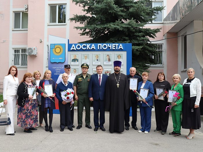 Глава городского округа ЗАТО Светлый Сергей Баталов, командир Таманской ракетной дивизии Алексей Воинов, настоятель храма Веры, Надежды, Любови и матери их Софии Алексий Новичков поздравили собравшихся с этим знаковым событием, поблагодарили за добросовестный труд во благо процветания малой родины и пожелали дальнейших успехов.