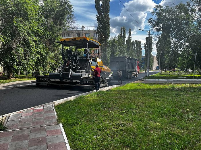 На улице Коваленко полным ходом идёт асфальтирование дороги. Здесь укладывается второй слой асфальта на армирующую сетку – это гарантирует долговечность и прочность нового покрытия.