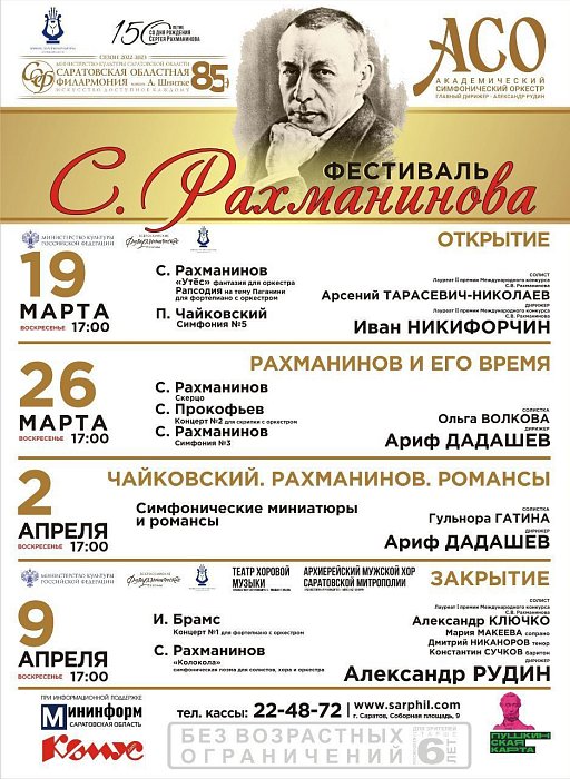 В 2023 году исполняется 150 лет со дня рождения С.В. Рахманинова. Указ о праздновании юбилейной даты подписал президент России Владимир Путин.Академический симфонический оркестр Саратовской филармонии представит четыре концертных программы, в которых примут участие лауреаты Международного конкурса имени С.В. Рахманинова пианисты Арсений Тарасевич-Николаев, Александр Ключко, дирижер Иван Никифорчин.