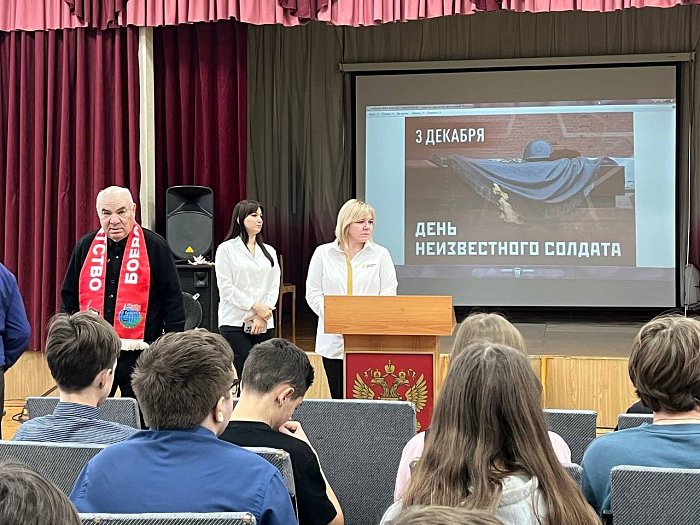 В День Неизвестного Солдата в светловской школе прошли памятные мероприятия, направленные на сохранение исторической памяти и воспитание уважения к подвигу защитников Отечества.Классные руководители провели тематические классные часы, на которых школьникам рассказали об истории памятной даты, установленной в честь советских и российских воинов, павших в боевых действиях, чьи имена остались неизвестными.