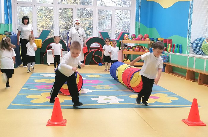В гости к ребятам пришёл сказочный герой – доктор Айболит, он объяснил ребятам важность закаливания, правильного питания, соблюдения режима дня. С огромным интересом сказочный доктор наблюдал, как ребята делают зарядку, а в конце и сам присоединился к спортивным упражнениям.