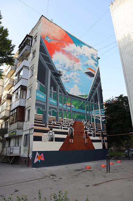 Увидеть новый арт-объект можно на пересечении улиц Чернышевского и 2-й Садовой. Картина стала одним из победителей фестиваля стрит-арта проекта ПФО «ФормART», который проводится по инициативе полномочного представителя Президента России в ПФО Игоря Комарова.Над проектом работали художники Манучехр Вохидов, студент СГТУ имени Гагарина Ю.А., и Полина Свирщёва. Также в Политехе разработали приложение дополненной реальности, которое оживляет изображение - на мурале появляются формулы, золотое сечение и многое другое.