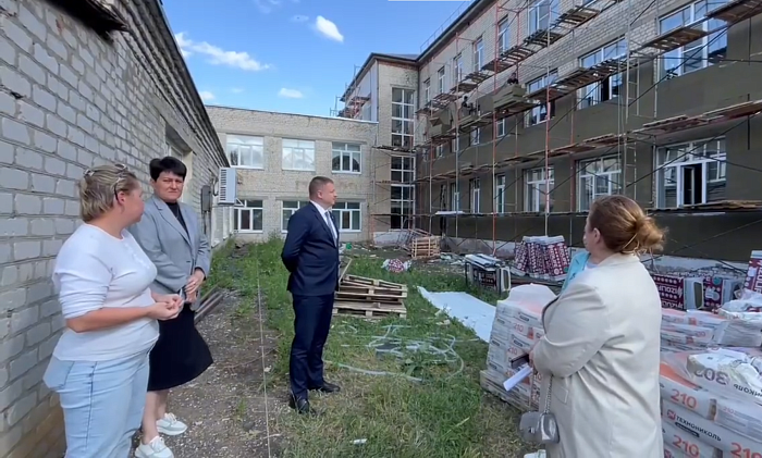 Сергей Баталов вновь посетил второй корпус школы №3 им.В.Н.Щеголева.Глава городского округа проверил ход ремонтных работ в образовательном учреждении. Продолжается ремонт третьего тренерского помещения, уже видны результаты.