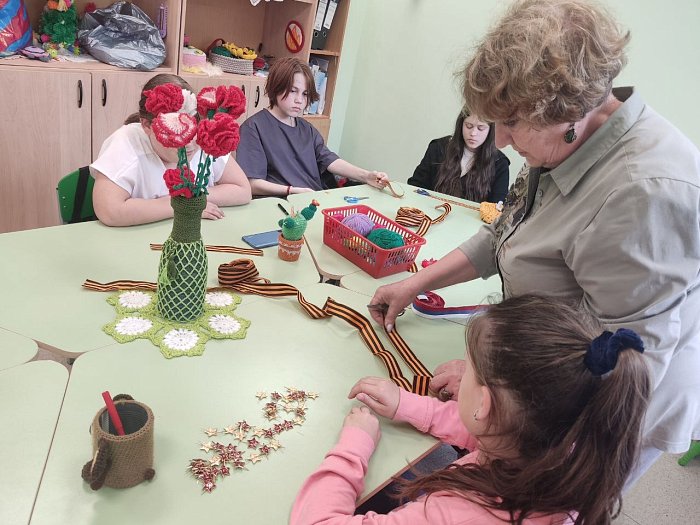 Воспитанники Дома детского творчества делали значки с георгиевской лентой