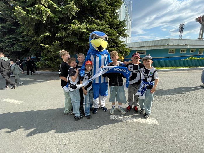Воспитанники отделения "Футбол" вместе с тренером Максимом Бледновым побывали на стадионе Локомотив г. Саратов и стали активными болельщиками футбольной игры между командами 1 лиги "Сокол" - "Тюмень".В перерыве между игрой проводились различные конкурсы среди болельщиков и наш юный футболист Андрей Коломеец выиграл билет на следующий матч "Сокола".