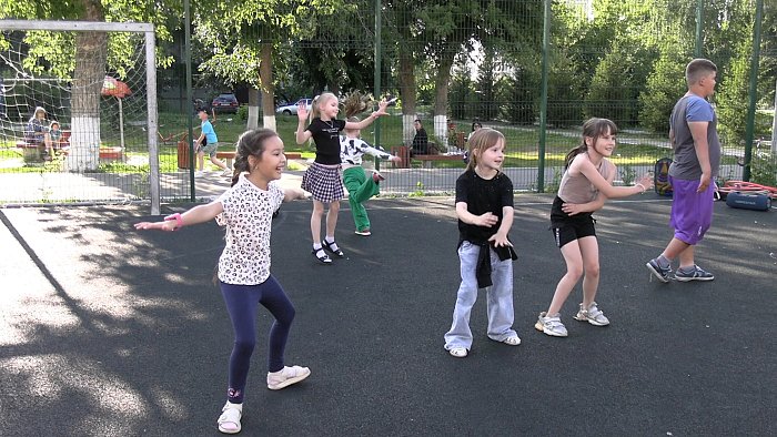 Ребята с удовольствием участвовали в коммуникативных танцах, а ловкость, гибкость, прыгучесть и глазомер им пригодились в спортивных эстафетах и играх.