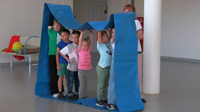 Ребята поделились на две команды, чтобы выяснить, кто же из них самый быстрый и ловкий. Мероприятие прошло шумно и радостно, а его участники состязались в веселых спортивных конкурсах «Разминка», «Цепочка», «Змейка» и других.