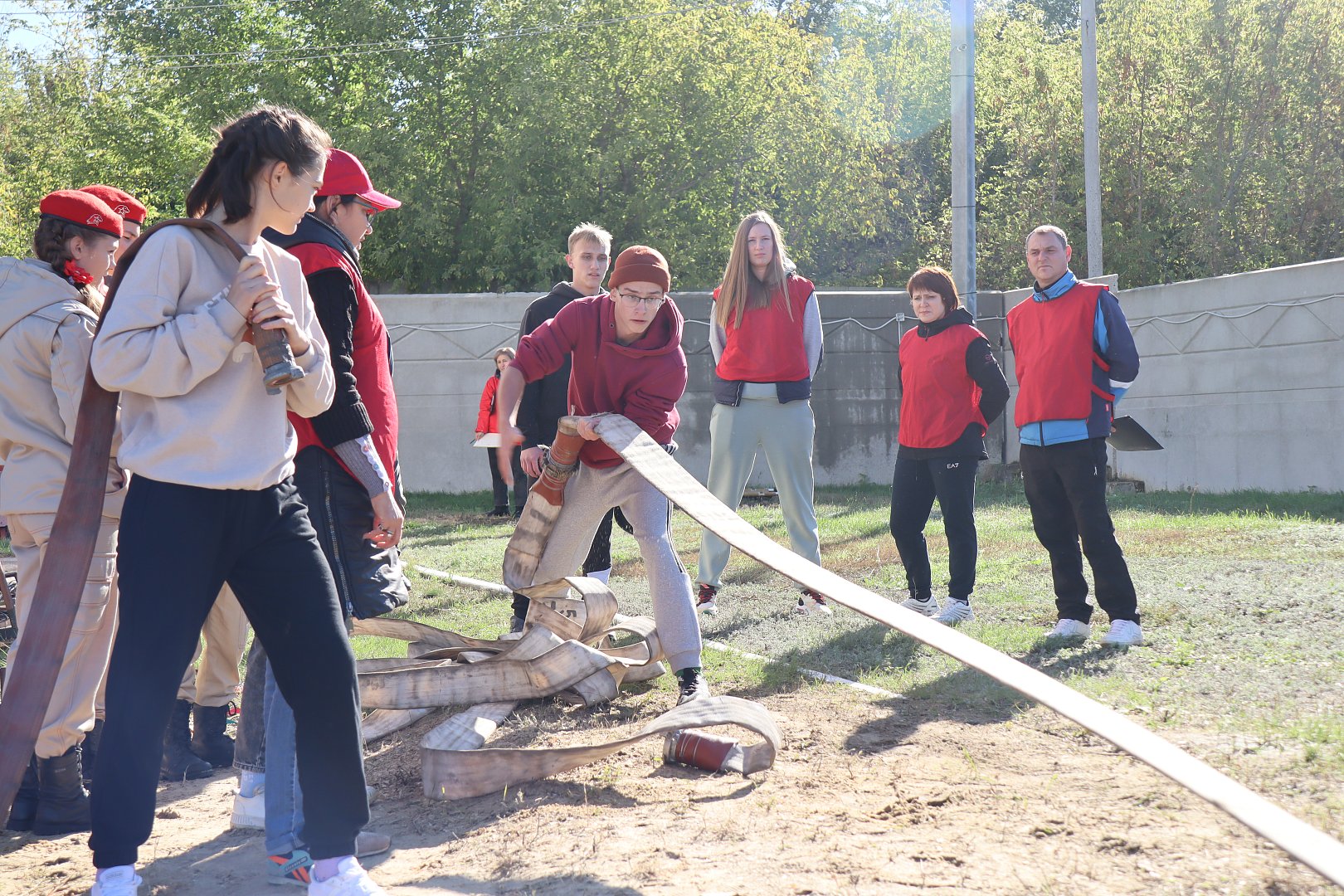 И, наконец, финишная прямая – заключительный этап военно-спортивной игры «Зарница», на котором по четверо юношей от каждой команды участвовали в боевом развёртывании пожарной машины.