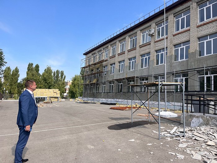 Помимо работ на фасаде, в школе идёт ремонт запасных выходов: завершена кирпичная кладка, продолжается демонтаж ступеней.
