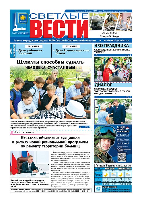В ближайшем номере газеты «Светлые вести» вас ожидает:- Наше интервью: Шахматы способны сделать человека счастливым;