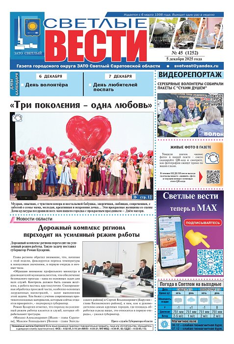 В ближайшем номере газеты «Светлые вести» вас ожидает:- «Три поколения – одна любовь»;