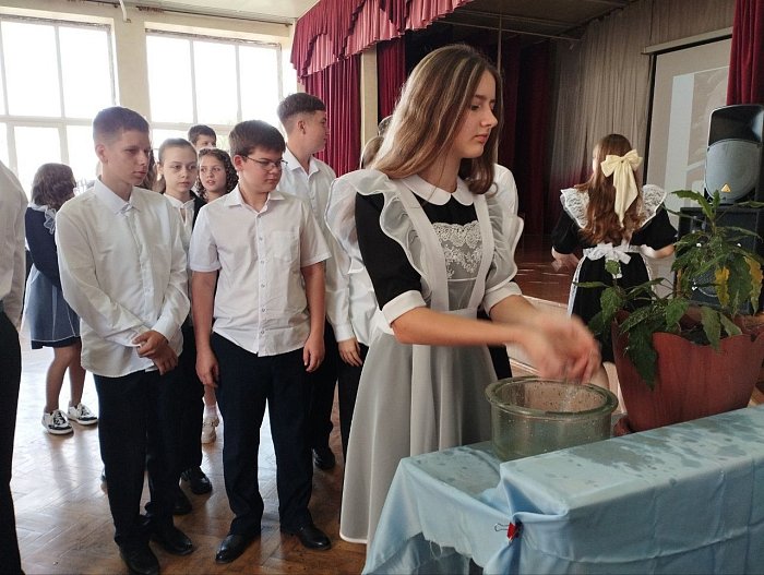 Для всех школьников прошла акция «Капля жизни». Участники акции полили из рук цветы, таким образом, символически поделились водой с теми, кого уже нет.