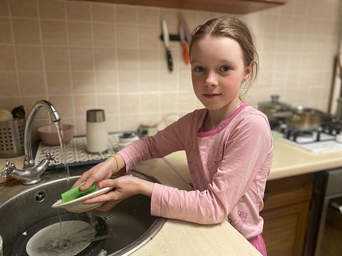 Школьники сегодня взяли домашние заботы на себя: пылесосили, мыли полы, вытирали пыль, гладили бельё, помогали в приготовлении пищи, мыли посуду.