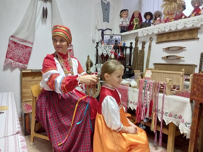 Каждый ребёнок попробовал осторожно «спрясть» льняную ниточку, увидеть, как кудель превращается в ровную пряжу. Затем ребята «гладили» бельё на скалке с помощью рубеля и удивлялись, как в деревнях обходились без современных утюгов: «Не железо гладит, а умелая рука». Девочки примерили традиционные женские украшения Воронежской губернии, почувствовали их тяжесть, полюбовались богатым узором и блеском.