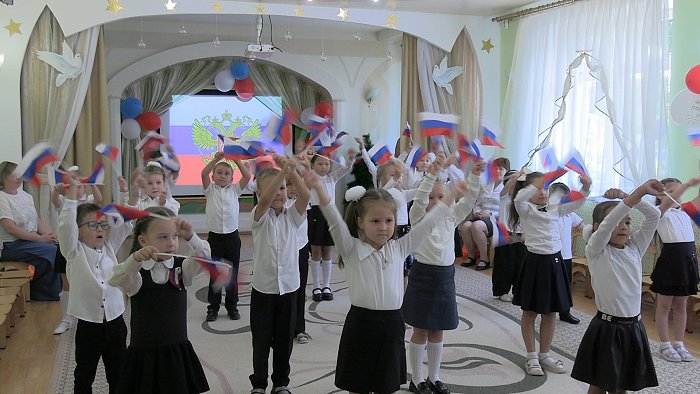 Дети дружно исполнили Гимн России. Затем воспитатели рассказали малышам историю происхождения российского флага и пояснили значение каждого цвета триколора.Дошколята декламировали стихотворения, исполняли патриотические песни, разгадывали загадки и азартно соревновались в тематических эстафетах.