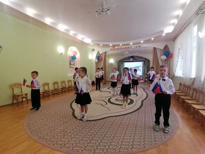 В Детском саду «Светлячок» состоялось мероприятие, посвящённое Дню Государственного флага Российской Федерации. Праздник открыла танцевально-спортивная композиция с флажками «Россия, вперёд!». В исполнении детей прозвучали Гимн Российской Федерации, песня «Российский триколор», стихи о значении цветных полос на флаге, о любви каждого к своей Родине.