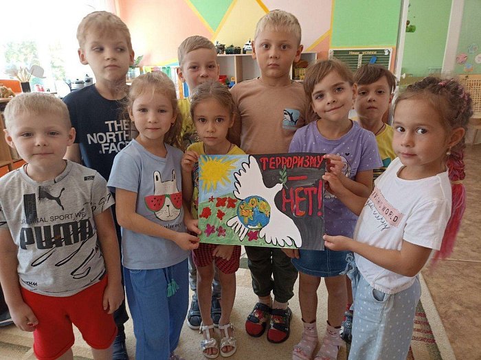 Дошколята вместе с воспитателем изготовили постер «Мы против терроризма», на котором отразили свое желание беречь и сохранять мир на нашей планете.