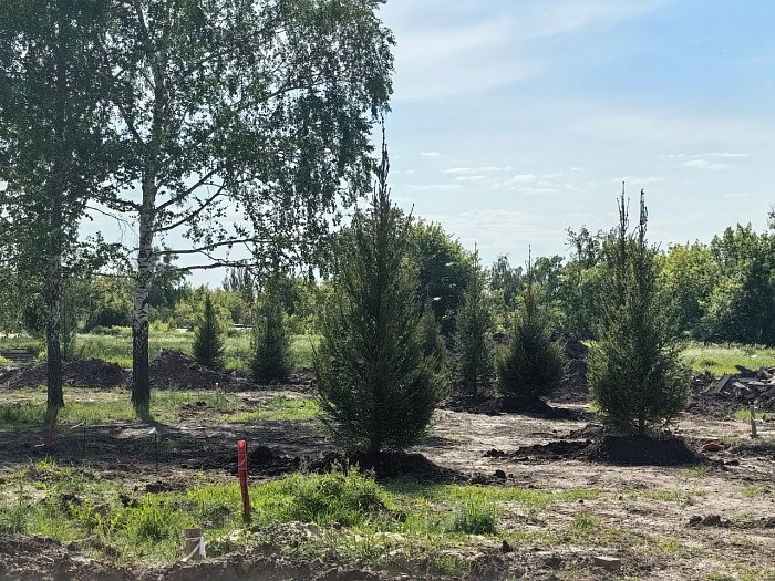 На территории «Каскада» высадили деревья хвойных пород. Они протянулись вдоль будущих пешеходных дорожек и зон отдыха.