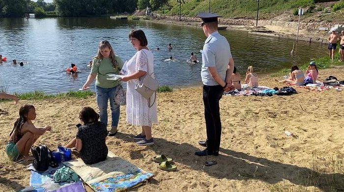 Сотрудники полиции, администрации городского округа и представители общественных организаций напоминали жителям поселка: купание и отдых у воды может быть безопасным только в специально отведённых для этого местах — санкционированных пляжах и местах отдыха!