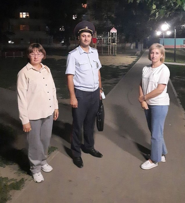 В Светлом продолжаются вечерние межведомственные рейды на предмет соблюдения подростками и их родителями «комендантского часа». Очередной рейд по выявлению несовершеннолетних, находящихся в общественных местах без сопровождения родителей (законных представителей) после 22.00 часов состоялся вечером среды, 11 августа.В рейде приняли участие инспектор ПДН межмуниципального отдела полиции Эльвин Сурхай оглы Гуламов, секретарь комиссии по делам несовершеннолетних и защите их прав при администрации городского округа ЗАТО Светлый Анастасия Анатольевна Панкина, директор и заместитель директора детско-юношеской спортивной школы городского округа ЗАТО Светлый Саратовской области Ольга Николаевна Ломова и Татьяна Владимировна Бородушкина.