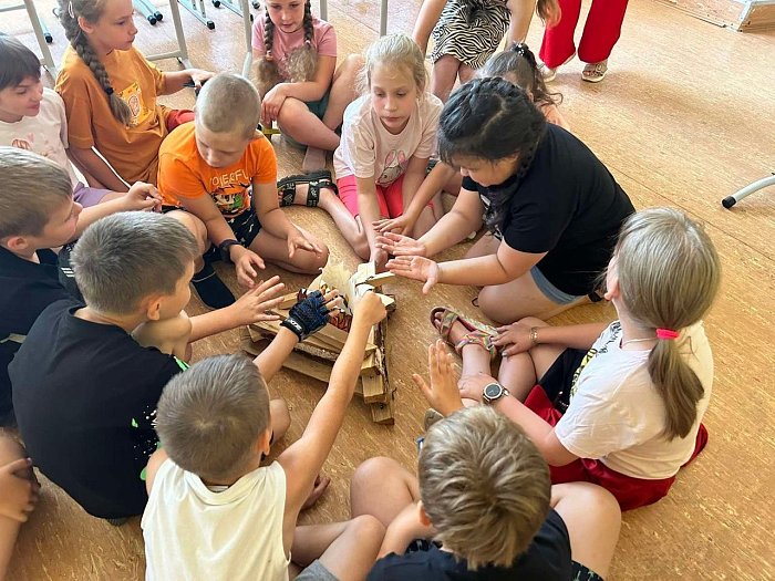 Ребята собрались вокруг импровизированного костра, чтобы почитать стихи и спеть песни о войне. Это помогло им проникнуться атмосферой тех времён и почтить память героев.