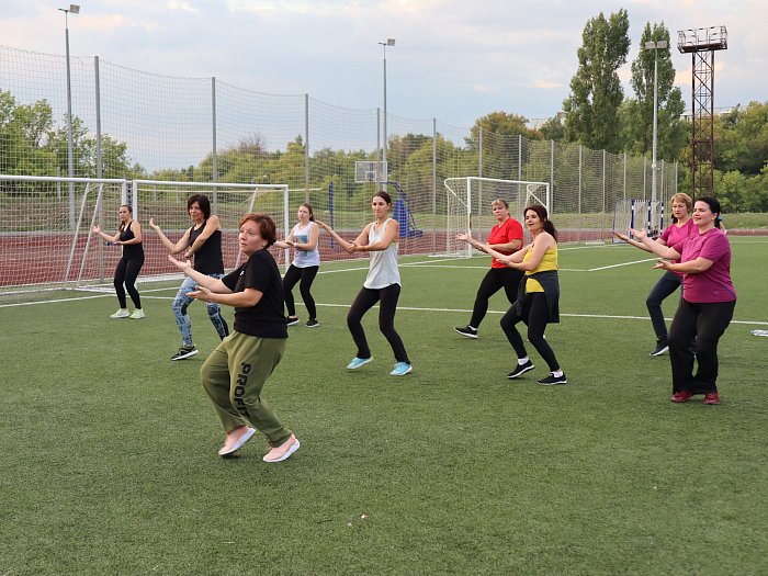 Все желающие смогли присоединиться к этому интереснейшему занятию. На стадионе под руководством опытного инструктора – хореографа лёгкая разминка плавно перешла в динамичные элементы танца.