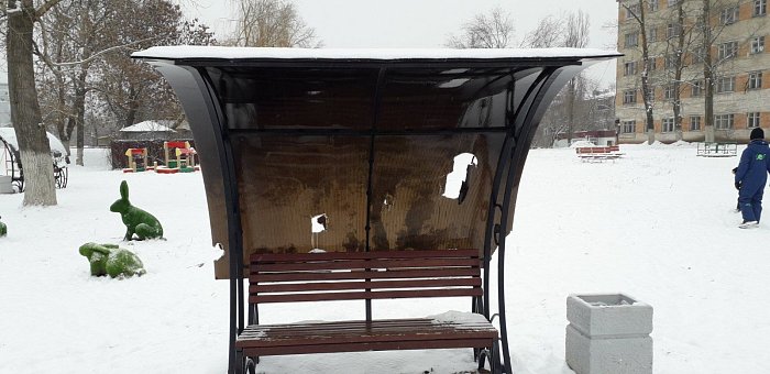 Перед Новым годом так не хочется говорить о вандализме. Но как быть, если праздничное настроение омрачают такого рода неприятные "сюрпризы": в сквере "У фонтана" пробили в нескольких местах навес над скамейкой. Все мы понимаем, что случайно сделать такое просто невозможно. И снова приходится поднимать тему вандализма и бездумного поведения светловской молодёжи.