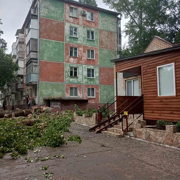 Опиловка, а особенно устранение аварийных деревьев – работа сложная и ответственная, на неё всегда выходят специально обученные работники. Однако не все жители Светлого, к сожалению, понимают, что данная работа проводится для их же блага, и часто негативно высказываются по этому поводу. И всё же это не снимает с ответственных за данный вид работ лиц обязанности качественно выполнять свою работу – и они это делают. Ведь многие деревья, кажущиеся на первый взгляд вполне «здоровыми», по факту оказываются со сгнившим стволом и представляют прямую угрозу для имущества, безопасности, а порой и жизни граждан.Так, чтобы грамотно спилить выявленное аварийное дерево, не повредив при этом близлежащие дома, постройки и провода, бригада работников МКП «ЖКХ» вместе с альпинистом прибыла на улицу Кузнецова. Возле дома №2 они чётко и оперативно произвели вырубку сложного дерева – высотой более пятиэтажного дома, с объёмной кроной. Ветки нависали над интернет-проводами и находящимся рядом строением – стоматологическим кабинетом. Огромный ствол дерева (не засохшего, с пышной зелёной листвой!), был полностью сгнившим.