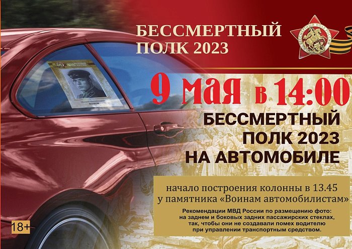 Отдать дань памяти и уважения героям, положившим свои жизни на алтарь Победы в Великой Отечественной войне можно разными способами.Приглашаем принять участие в акции «Бессмертный автополк», которая пройдет 9 мая в 14.00.