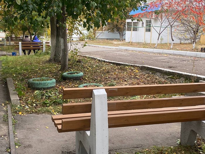 Продолжается установка новых лавочек и урн во дворах поселка