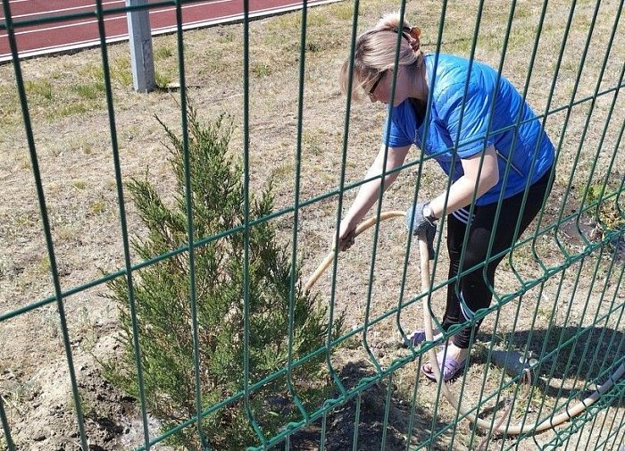 К высаженному два года назад можжевельнику добавились саженцы туи шаровидной.