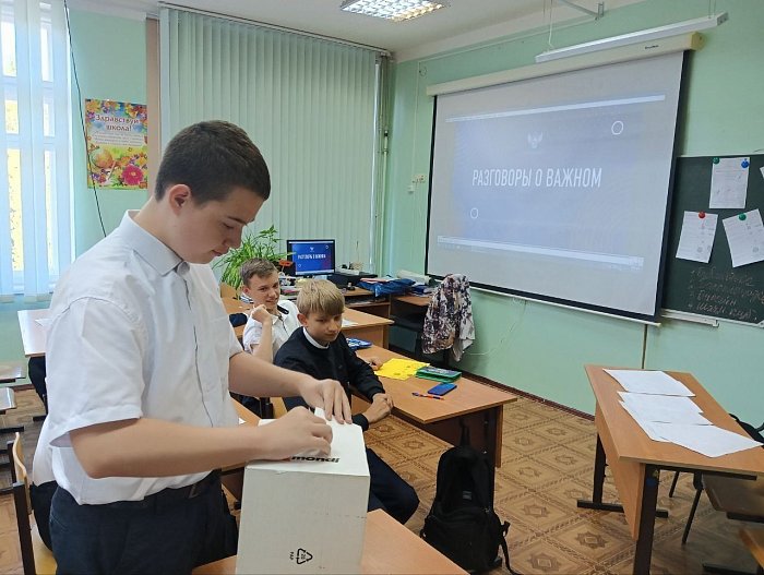 В школе №2 им.В.А. Коновалова прошло очередное занятие внеурочного цикла «Разговоры о важном». В ходе урока «Избирательная система России (30 лет ЦИК России)» учащиеся узнали, что выборы – это основной способ формирования органов власти, призванных служить обществу и интересам народа. Поговорили о том, чем ежедневный выбор отличается от выборов, которые проходят в единый день голосования.