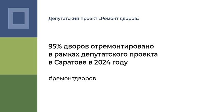 Ремонт дворов: в рамках этапа 2024 года в Саратове уже отремонтировано 95% дворов