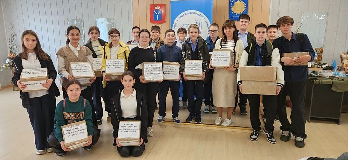 Учащиеся 6 «б» класса школы N 2 им. В.А. Коновалова принесли в центр сбора гуманитарной помощи посылки для участников специальной военной операции.