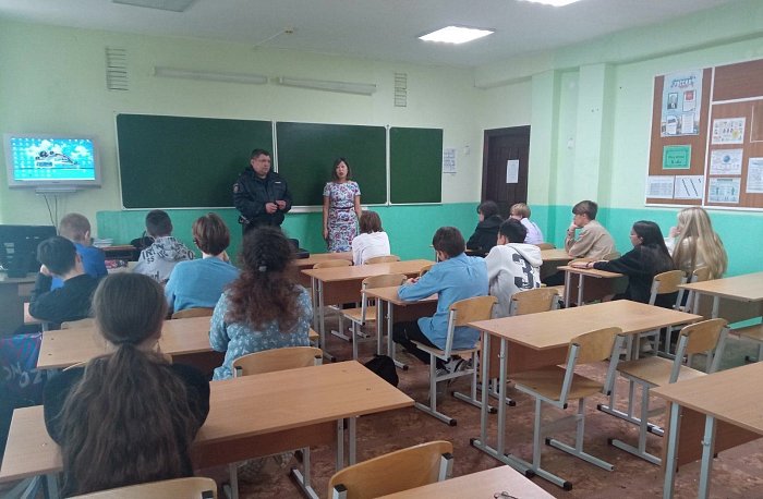 Ежемесячно в школе №3 им. В.Н. Щеголева проводится Единый день профилактики безнадзорности и правонарушений несовершеннолетних. Тема очередного мероприятия: «Профилактика оскорблений, клеветы, буллинга». В сентябре социальный педагог школы Елена Емелина организовала встречу учеников 8 «Б» класса с сотрудником МО МВД по ЗАТО п.Светлый, временно исполняющим обязанности инспектора ПДН майором полиции Иваном Боевым.