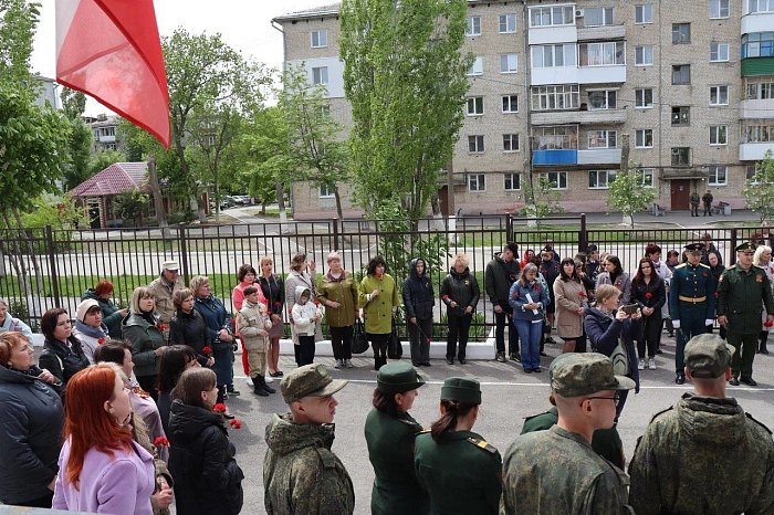 Педагоги, родители и школьники, военнослужащие и все желающие почтить память ветерана несли гвоздики к мемориальной доске В.А. Коновалова.