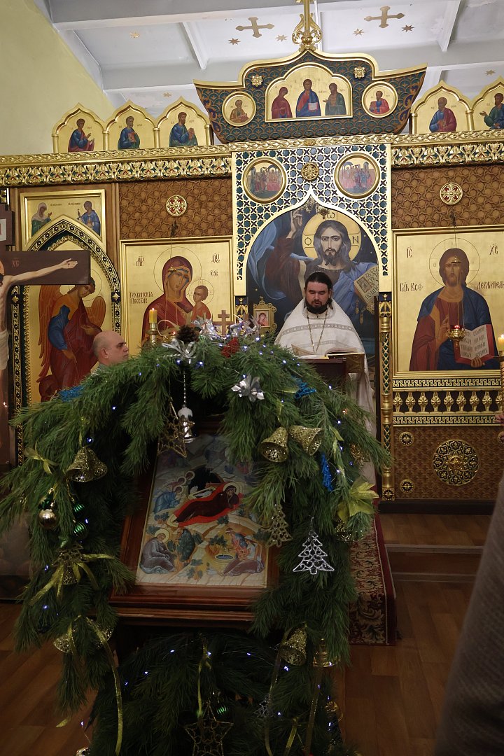 Настоятель храма прочитал прихожанам поздравление от Патриарха Московского и всея Руси Кирилла. В завершении праздничного богослужения Алексий Новичков поздравил всех собравшихся с Рождеством Христовым.