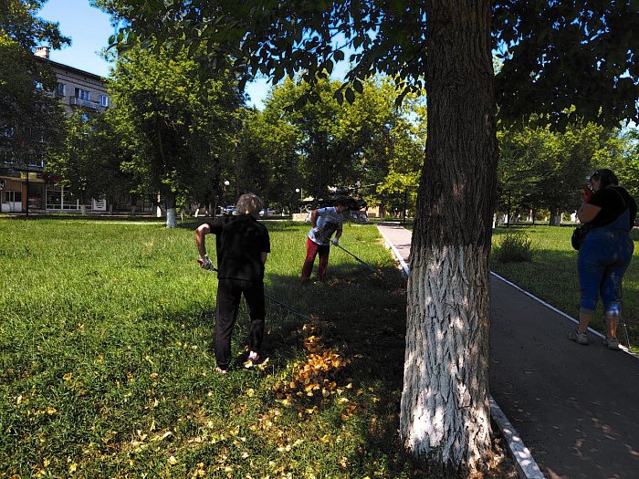 Не остались без внимания и общественные пространства. Сотрудники Дома культуры продолжают наводить порядок в сквере "У танка".