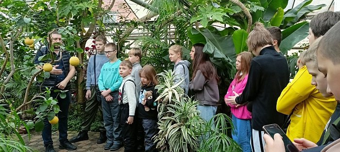 Школьники познакомились с экзотическими фруктами, которые также растут в лимонарии, такими как гранат, папайя, карамбола, фейхоа, маракуйя, каламондин и многие другие.