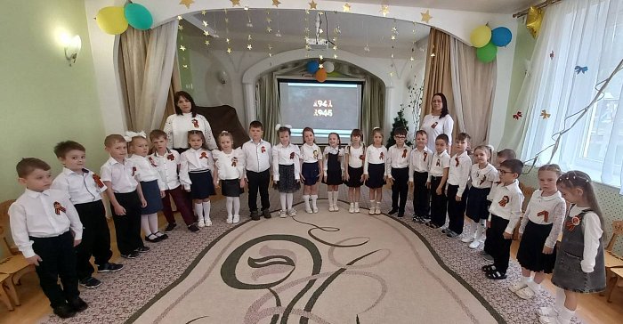 В детском саду «Светлячок» в рамках цикла «Разговоры о важном» прошел Час мужества. В группах старшего дошкольного возраста с детьми проведена беседа о Великом празднике «День Победы». Ребята узнали о подвигах маленьких героев: Валя Котик, Леня Голиков, Зина Портнова, Марат Казей, услышали рассказ о страшных днях войны, как наши солдаты ценой своей жизни защищали свою Родину, закрепили знания о символах Победы - георгиевская ленточка, красная гвоздика, вечный огонь.