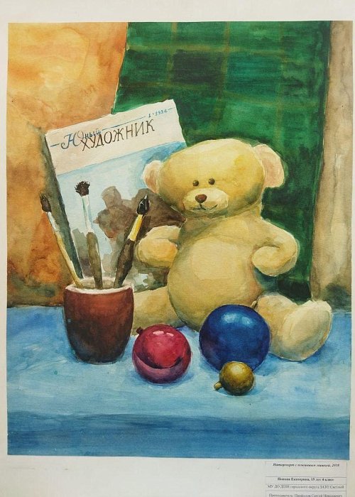 Свои работы представили: Амелия Панченко - «Натюрморт с крынкой»; Ксения Соломатина - «Натюрморт с тюльпанами»; Мария Хлынина - «Натюрморт с цветами»; Елизавета Самиева - «Конек-Горбунок»; Алиса Пчелинцева - «Натюрморт с фруктами»; Мария Лёсина - «Мама на работе»; София Киреева - «Весенний цветок»; Есения Копейкина - «Натюрморт с уткой»; Ангелина Матяшова - «Автопортрет»; Альбина Кусаман - «Весенний натюрморт»; Екатерина Попова - «Натюрморт с плюшевым мишкой».