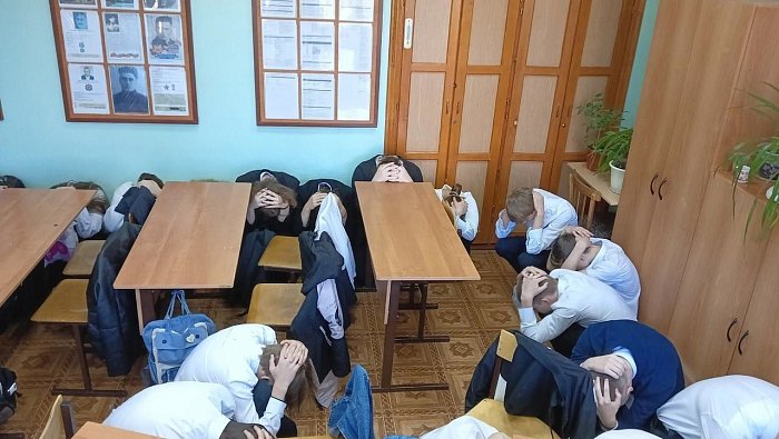 На практике ребята отработали навыки баррикадирования дверей и определили, где лучше находиться в классе во время вооружённого нападения. По сигналу тревоги они организованно покинули здание школы.