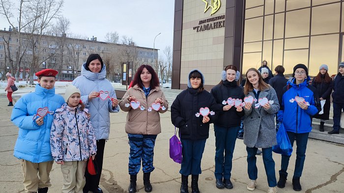 Активисты детских и молодежных объединений Светлого в составе Движения Первых, Юнармии, Юных друзей полиции, Юных пожарных спасателей подготовили небольшие сувениры, сделанные своими руками, и подарили их жителям городка с самыми теплыми весенними пожеланиями.