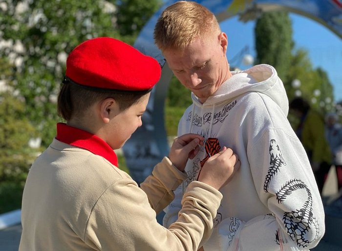 Они создали яркие броши с символической лентой и раздали их жителям нашего города накануне праздничного Парада Победы.