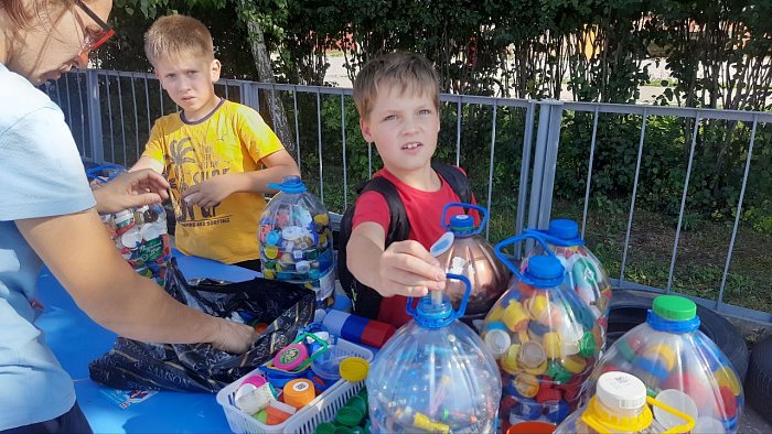 "Зелёный патруль" Экостанции Дома детского творчества провёл масштабную экологическую акцию по сбору батареек и пластиковых крышек.Это был фантастический день! Взрослые и дети приносили батарейки, пластиковые крышки. Было собрано 6 бутылок пластиковых крышек - более тысячи штук и более 7 кг батареек!