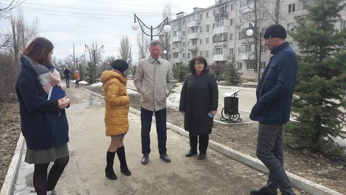 Глава городского округа ЗАТО Светлый О.Н. Шандыбина, заместитель главы администрации по строительству и ЖКХ А.В. Куланин, заместитель главы по социальным вопросам Ю.А. Иваненко, директор МУ «Управление муниципальным хозяйством» Т.А. Нижегородцева, директор МУП «ЖКХ» А.М. Ильин ознакомились с состоянием территорий, подлежащих благоустройству - в районе КПП № 5, микрорайон улицы Ленинской, территория остановки автобусного маршрута № 491.